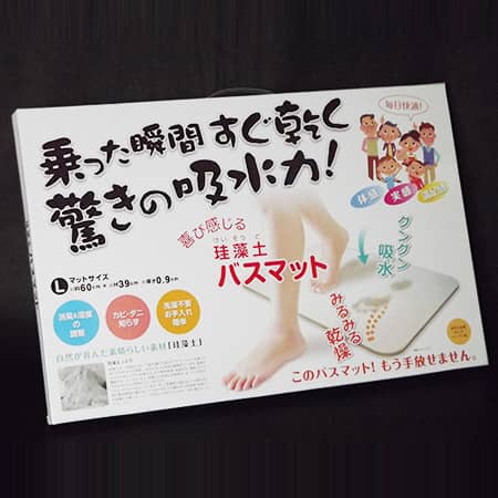 珪藻土バスマットは「驚異の吸水力」「脱臭・湿度調整効果」「カビやダニの発生を抑制」「洗濯不要でいつでも快適」という今までのバスマットでは考えられない多数のメリットがあります。
